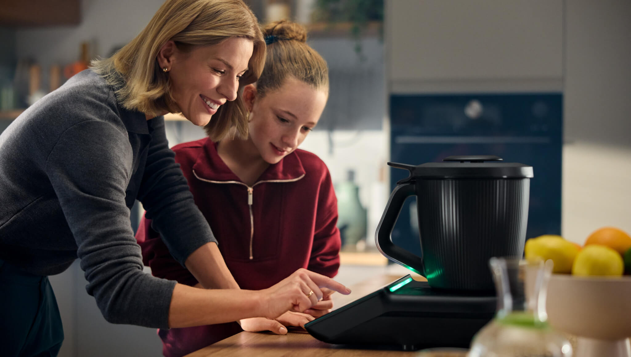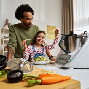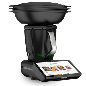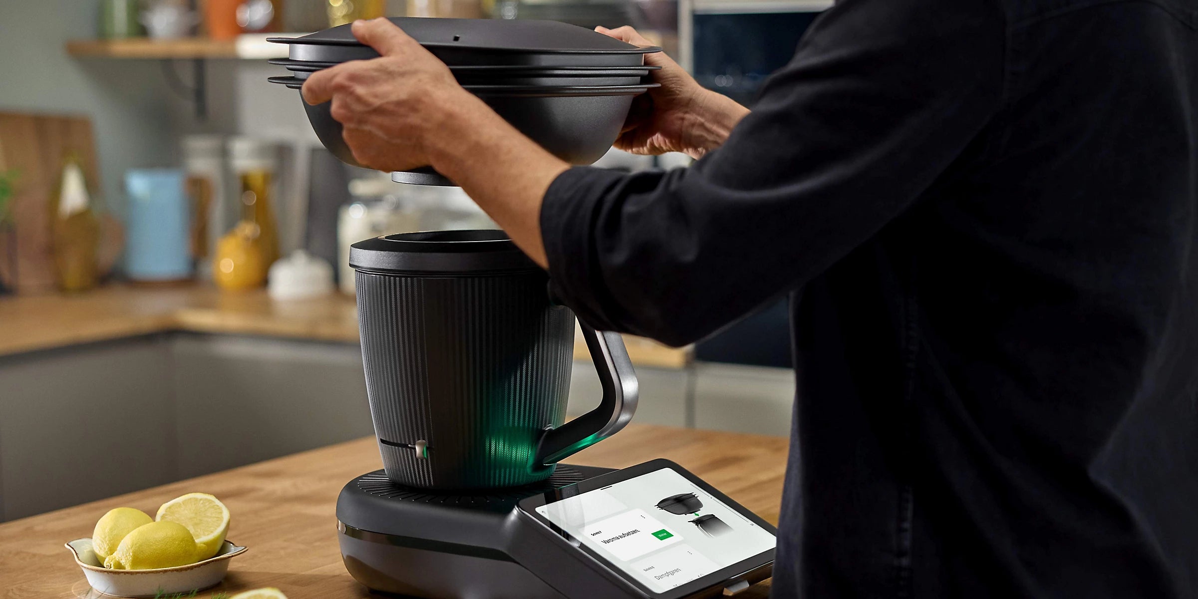 Vorwerk TM7 mit noch mehr Fassungsvermögen. Mixtopf-Isolierung zum sicheren Berühren bei Hitze. Kompaktes Grundgerät mit großem Multi-Touch-Display & integriertem Gleiter.